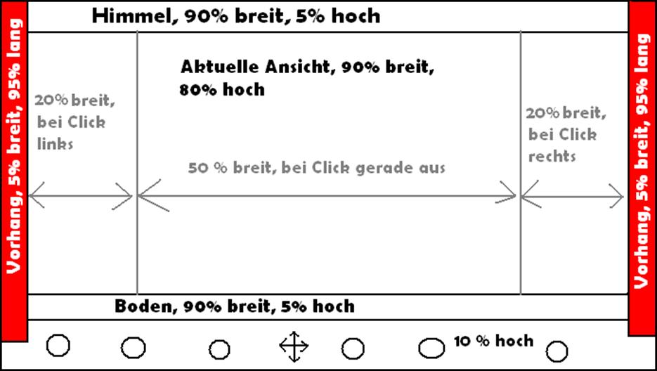 Pfeil nach unten: Zurück gelangt der Betrachter nicht direkt, denn nicht von jedem Punkt ist ein Rückweg möglich. Mit diesem Knopf erfolgt ein umwenden nach hinten.